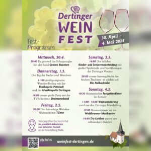 Weiterlesen Elisa, die neue Dertinger Weinprinzessin 2025, lädt ganz herzlich ein zum Dertinger Weinfest von Mittwoch, 30.4. bis Sonntag, 4.5.